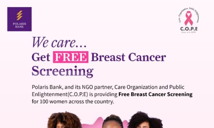 Polaris Bank has reaffirmed its commitment to community health and social impact with the launch of a nationwide free breast cancer screening initiative in partnership with its NGO partner, Care Organisation and Public Enlightenment as part of the commemoration of World Cancer Day.